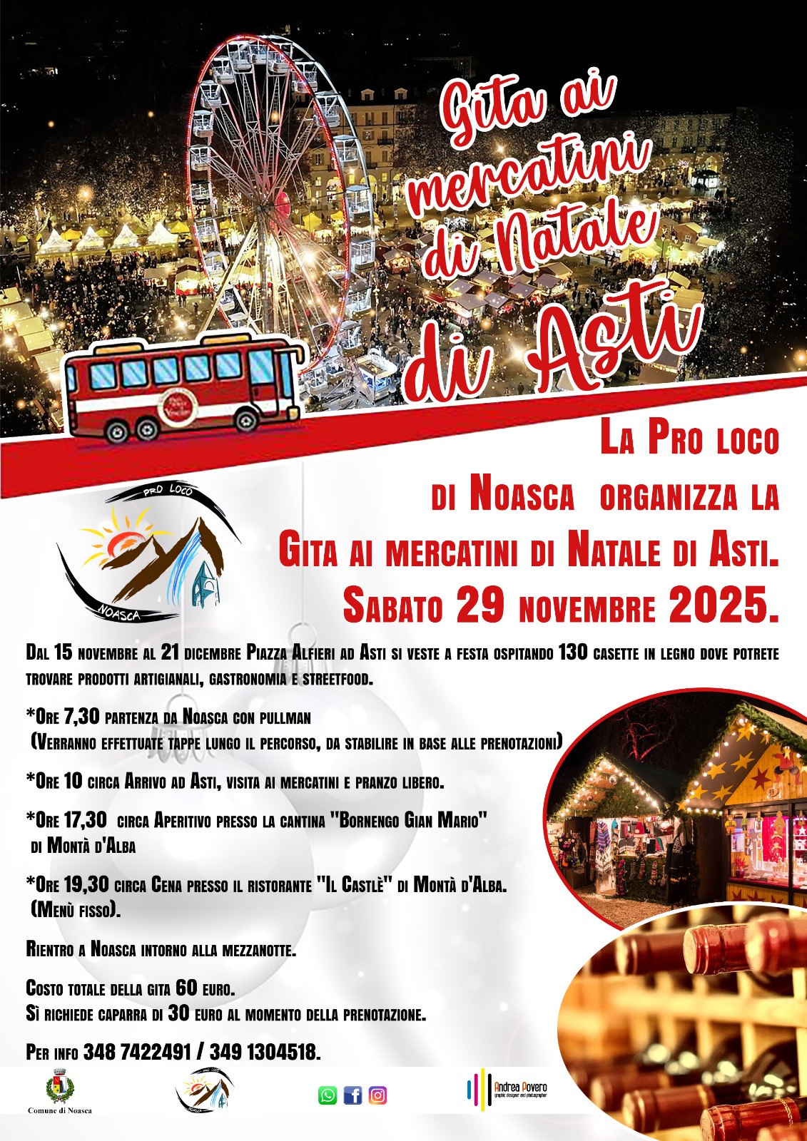 La Pro Loco di Noasca organizza la gita ai mercatini di Natale di Asti.