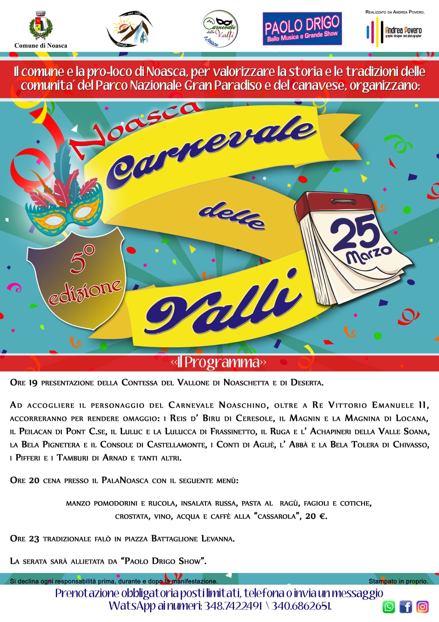 Il Comune e la pro-loco di Noasca, per valorizzare la storia e le tradizioni delle comunità del Parco Nazionale Gran Paradiso e del canavese, organizzano il CARNEVALE delle VALLI.